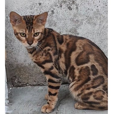Tenemos hermosos y dulces gatitos bengalí con colores contrastantes rosetas únicas, simétricas con glitter. Con todas sus vacunas y desparasitados, muy sanos y juguetones. Con excelente temperamento ya que desde que nacen tienen contacto humano, no viven en jaulas y eso emocionalmente los ayuda mucho, ya que crecen mas seguros al estar en espacios abiertos donde pueden correr, jugar y trepar con otros gatitos. Todos nuestros gatitos cuentan con su registro TICA. Nuestro cattery esta federado en The International Cat Association. Nos encontramos en la ciudad de Puebla, Puebla. México.
